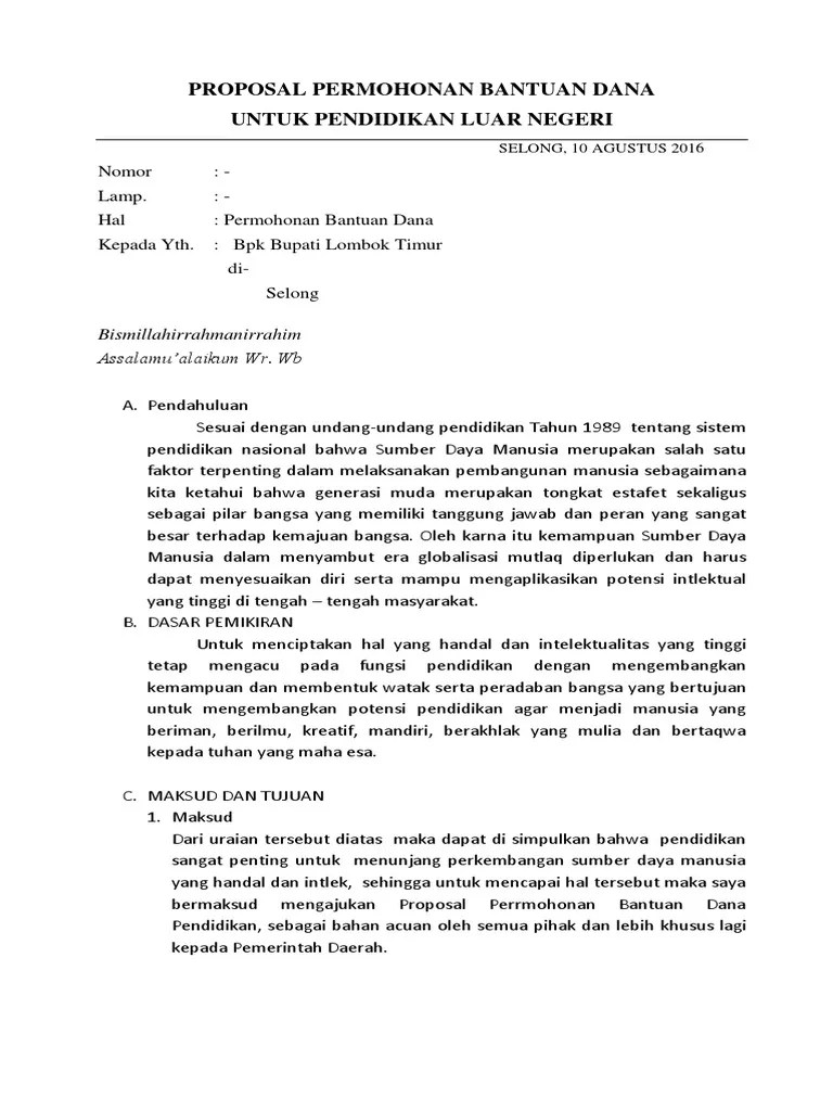 Dengan hormat, untuk meningkatkan kualitas dan pelayanan dalam bidang pendidikan dan pemberdayaan masyarakat dengan ini kami mengajukan bantuan dana sarana . Dengan begitu, calon donatur berpeluang besar memberikan sumbangan untuk kegiatan yang kamu buat. 1 proposal permohonan bantuan dana pendidikan untuk penyelesaian studi akhir oleh: Surat proposal juga biasa disebut dengan . Proposal permohonan bantuan dana hibah.